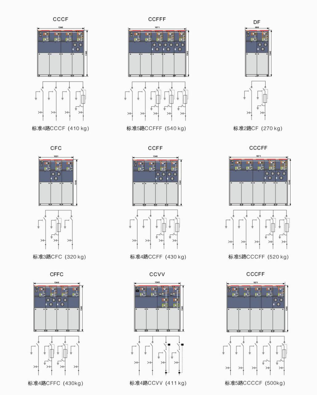 开关柜为模块化单元模式,可根据不同用途进行组合;由固定式单元组合与可扩展型单元两大类,满足各种变电站对紧凑型开关柜灵活使用的需要。