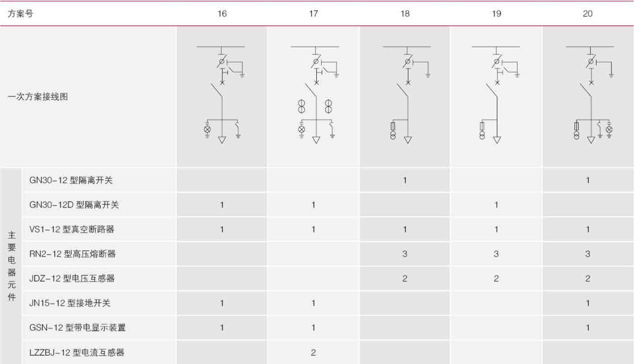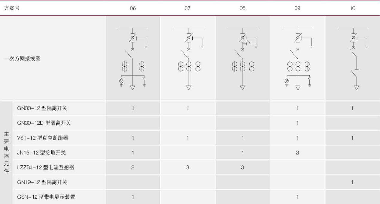 开关柜主要技术参数及元件型号